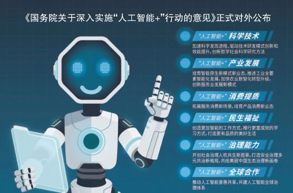 “人工智能 ”行动,是2024年首次写入政府工作报告并于2025年深化实施的重大战略。2025年3月,《国务院政府工作报告》正式提出深入实施“人工智能+”行动。2025年7月31日国务院常务会议审议通过《关于深入实施“人工智能+”行动的意见》,同年8月26日国务院正式印发该意见。此次行动以推动人工智能与经济社会深度融合为核心目标,明确到2027年实现人工智能与科技、产业等六大重点领域深度融合,新一代智能终端普及率超70%;到2030年应用普及率超90%,智能经济成为核心增长极;2035年全面建成智能经济和社会新形态。重点部署“人工智能+”科学技术、产业发展、消费提质、民生福祉、治理能力及全球合作六大行动,涵盖科研范式变革、工业全要素智能化、智能网联汽车推广、医疗健康应用等关键领域。政策同步强化模型算法、数据算力、人才培育等八大基础支撑,建立动态安全治理体系。2025年9月湖南省政府常务会议等地方部署显示,该行动正加速落地实施,计划2027年实现智算算力5.25EFlops,2030年建成全国人工智能赋能应用引领区。